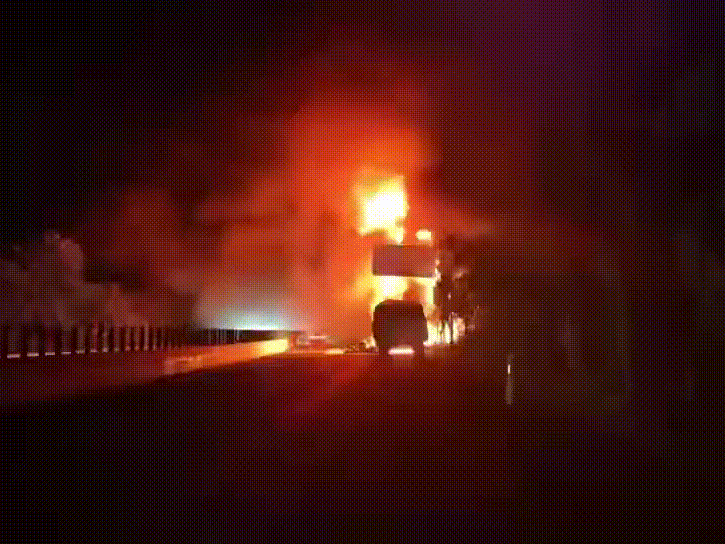 沪昆高速贵州境内,33吨塑料颗粒猛烈燃烧!