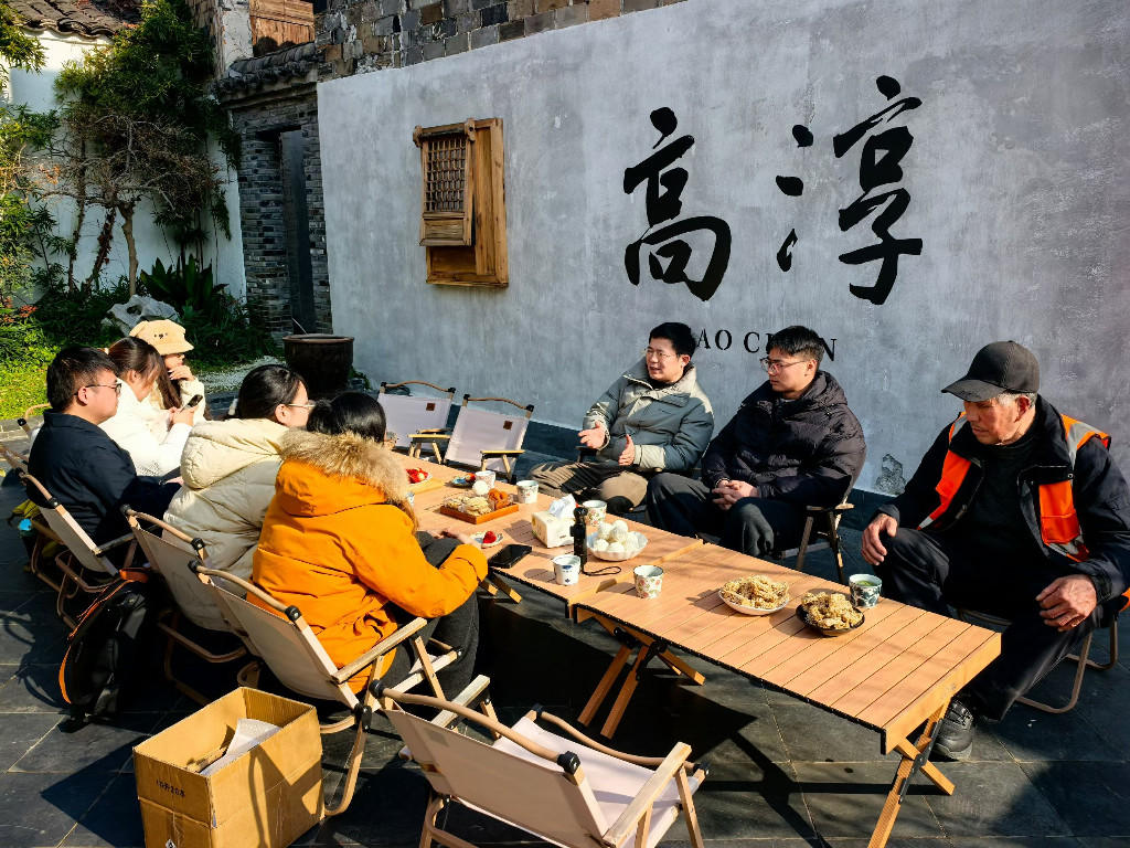 随后,团队展开系列专题访谈。我们走近“90后”非遗工匠——彩木影雕创始人邢志鹏,从他的一刀一笔、一言一语中,体会匠心传承的温度与坚守的重量;也与默默维护街巷整洁的清洁工人交谈,从另一个视角理解老街日常运转的细节;我们还请教了高淳地方文史研究专家濮阳康京老师,聆听了一堂深刻而有趣的高淳风物历史课。最后,当地管委会及文旅工作者也与我们分享了关于老街保护与发展的思考。访谈所得与感悟,将于后续篇章集中呈现。