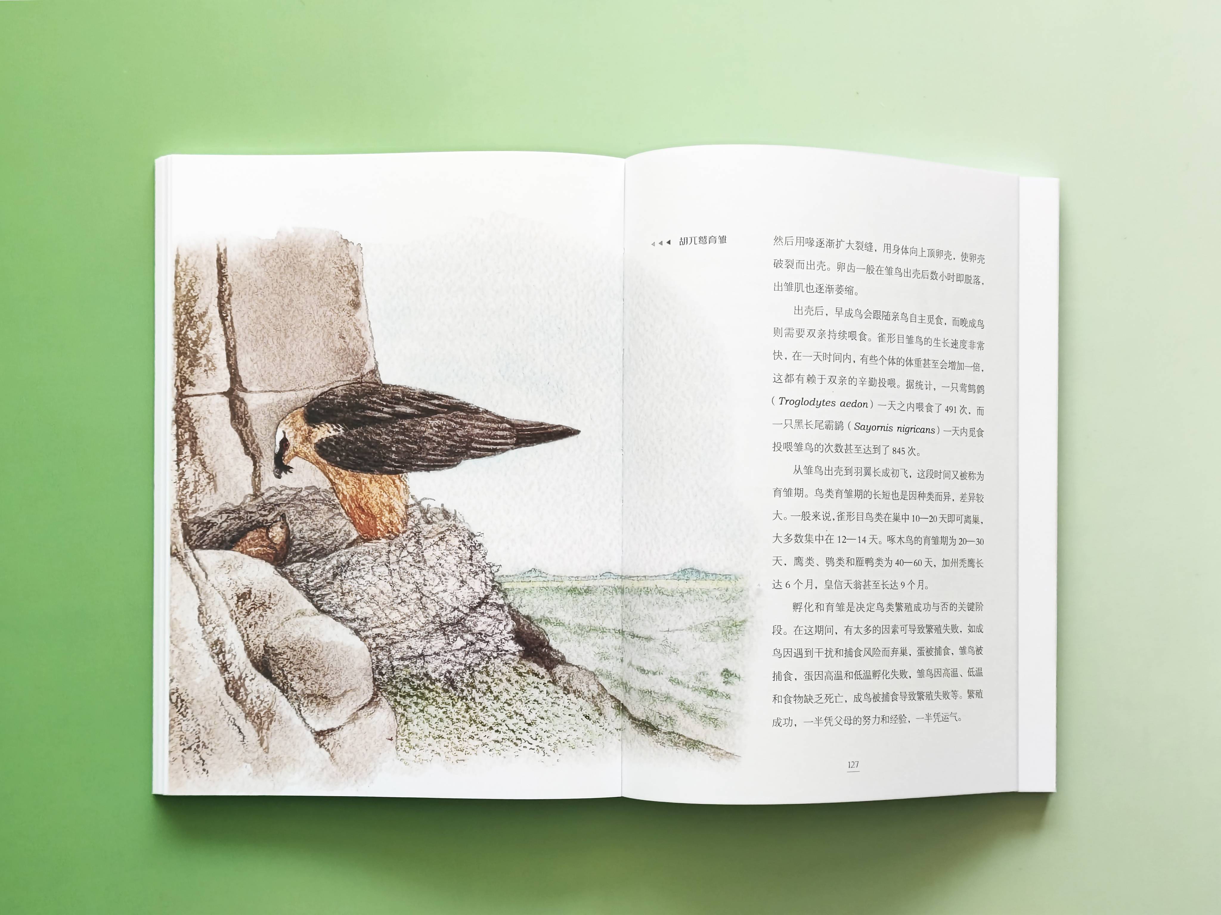 艺术与科学的完美融合让该书更具吸引力。艺术学博士、博物画家裘梦云绘制的百余幅全彩插画,精准还原了鸟类的形态特征、行为状态与栖息环境。从啄木鸟啄木时的动态瞬间,到鸳鸯戏水的唯美场景,再到信天翁翱翔的壮阔画面,每一幅插画都兼具科学性与艺术感染力,既辅助读者理解文字内容,又以视觉美感激发对鸟类的喜爱之情。裘梦云的专业功底确保了插画的准确性,而艺术审美则让科普变得赏心悦目。