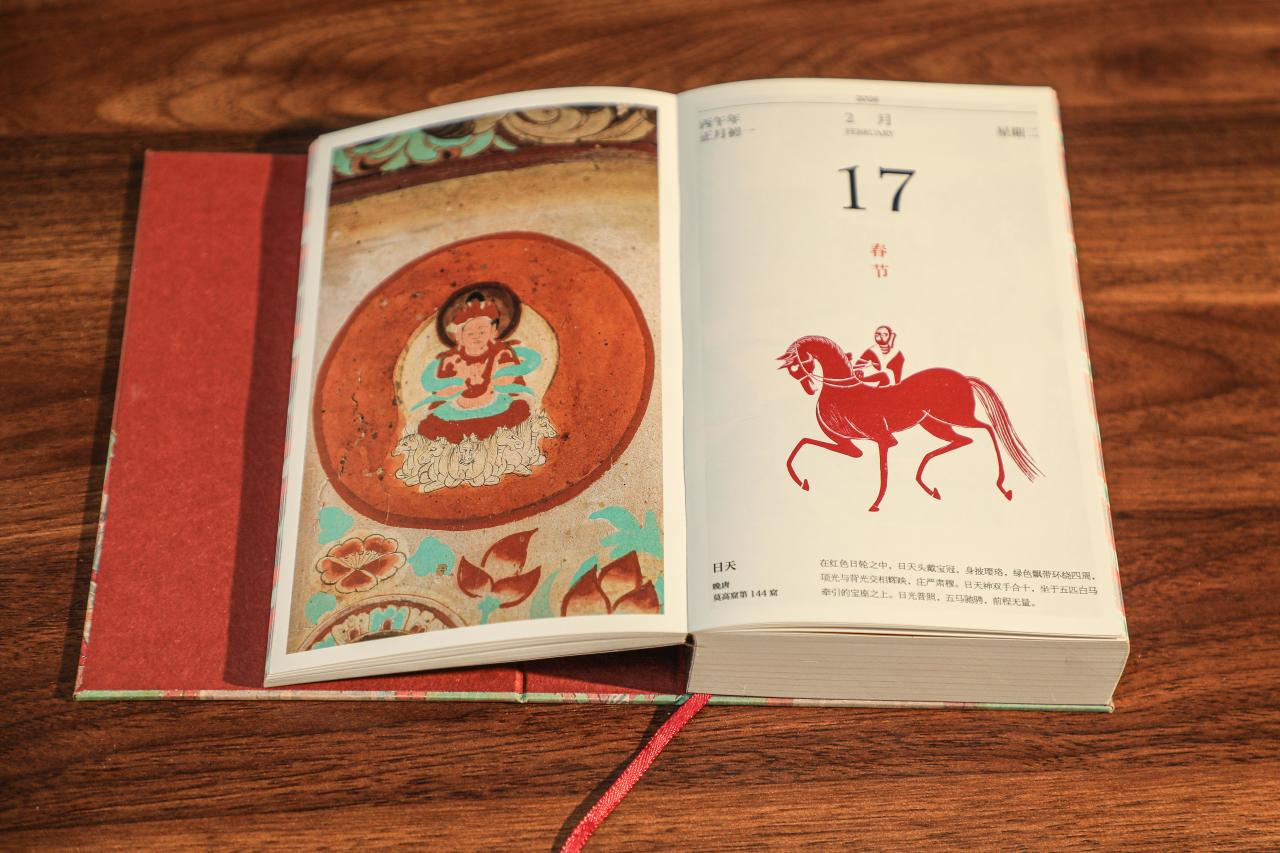 《敦煌日历》由中信出版与敦煌研究院共同出品,敦煌独特的翼马壁画是今年《敦煌日历》最大的看点,翼马是敦煌壁画中最具代表性的神瑞动物之一,其造型大多数为肩生双翼、通体青蓝色的天马,造型既有中国本土原始图腾崇拜的元素,也有沿着丝绸之路传来的波斯有翼神兽形象的显著影响,具有吉祥、成功、生活美好的寓意。中信出版介绍,今年《敦煌日历》推出了台历版,这是为了回应此前读者要求的“解放双手,沉浸赏画”的需求。