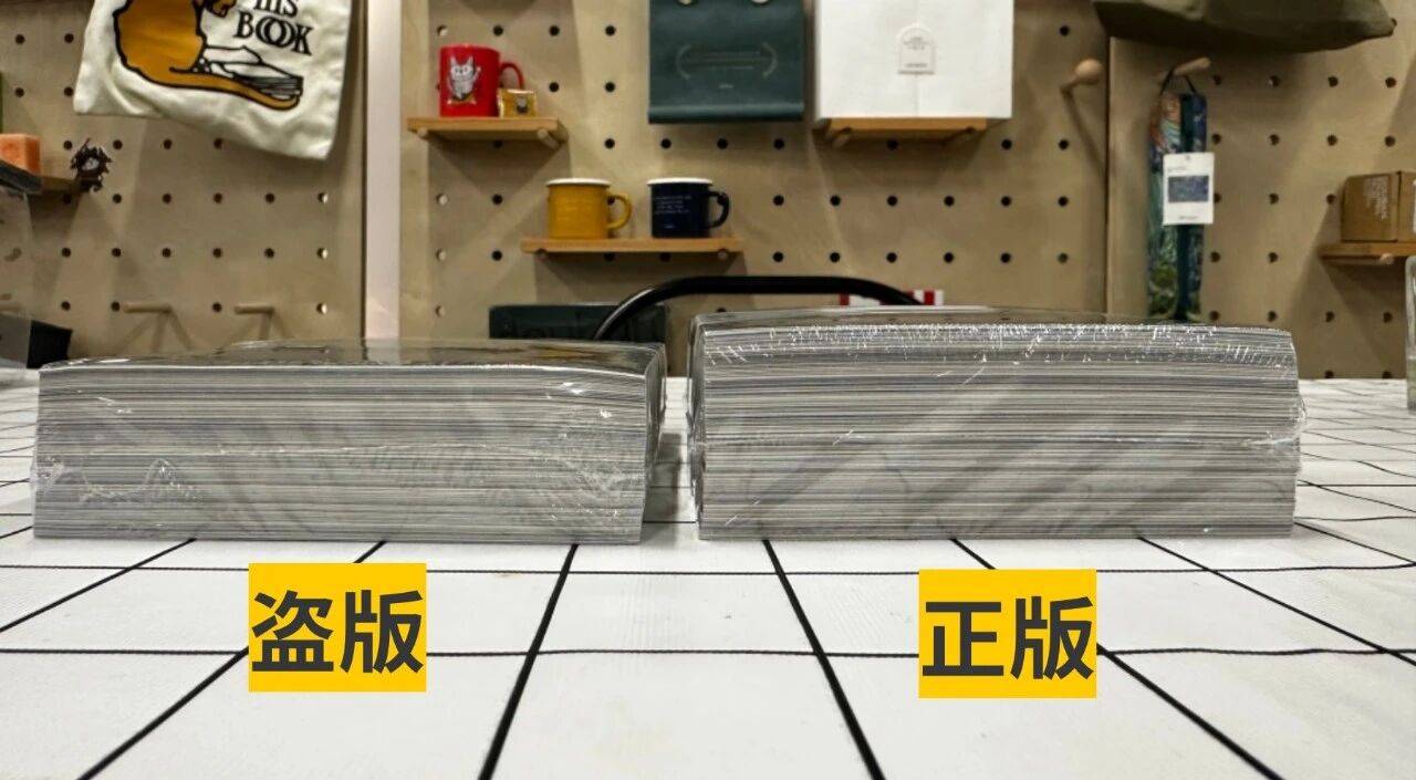 越是热度高的日历书被盗版的情况就越为严重,对此,多家出版社于近期发布了盗版日历书识别指南,《故宫日历》因为一向很受读者欢迎,长期以来都是不法商贩盗版觊觎的目标,11月底,故宫出版社再次发布了识别盗版《故宫日历》的办法帮助读者避坑,比如徽章包装袋的封口细节,书脊圆标烫金细节,腰封是否使用具有反光效果的UV印刷等等。中国科学技术出版社也在十一月发布了一条严正声明,表示出版社已经关注到今年推出的科普日历书《健康日历2026》遭到大面积盗版,在公开律师函的同时也附带了鉴别攻略,对正版盗版的纸张颜色、铁环工艺、字体进行对比。豆瓣、单向历也发过类似的正版盗版对比图,不难看出两者的差别的确很大,因为使用的纸张品种不同,两者的厚度差别很大。