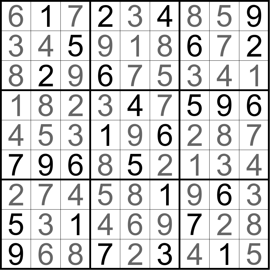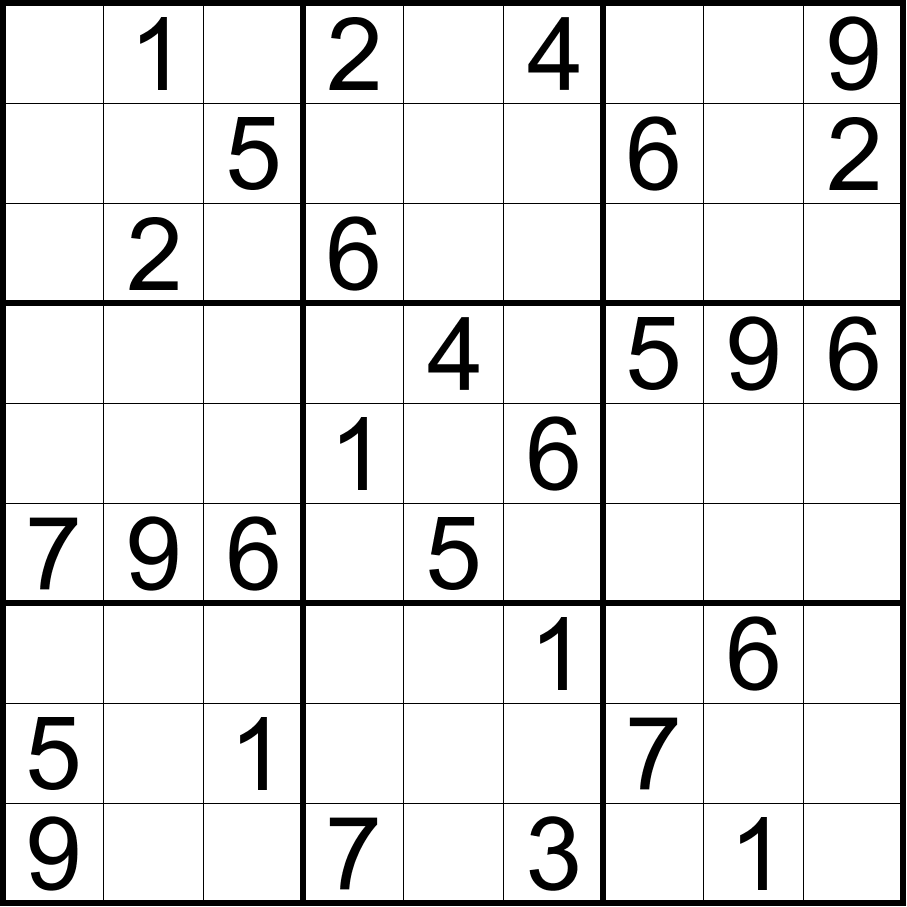 无马数独:将数字1-9填入空格内,使每行、每列和每宫内的数字均不重复。彼此形成国际象棋中马步(二格拐一格)位置的两格内不能填入相同的数字。