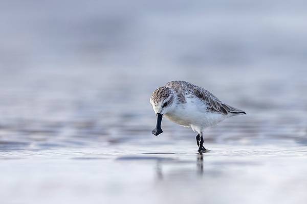 初见小勺子,“光头李”的一颗心,就被萌化了。为了与这种可爱的小鸟多见几次,多少个日夜,他守在晨曦中,蹲在夕阳下。他已拍到200多种鸟儿,而那特别珍贵的,是一只只憨态可掬的小勺子。老李向一同在拍鸟的我,展示他捕捉的得意瞬间:一只勺嘴鹬,瞪着明亮的小眼神,伸着那勺子般的宽喙,敏捷地去捕那正在掠水而起的小鱼;两只小勺子,挤在一起谈情说爱;两兄弟,相互谦让着,放跑了面前一条受惊的小虾;还有梳着羽毛的、伸着懒腰的,以及摆出各种傲娇姿态的小勺子……