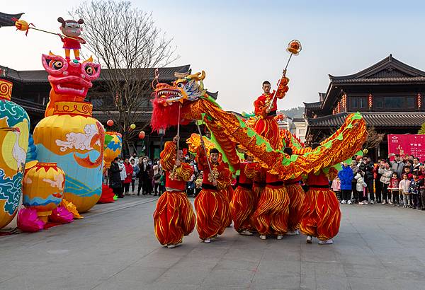 龙狮闹春,而春正在来的路上。