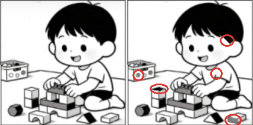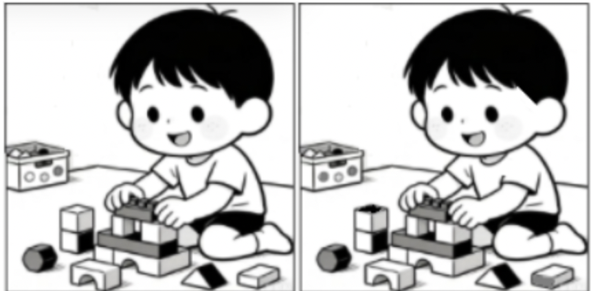 两幅图有五处不同,你能看出来吗?
