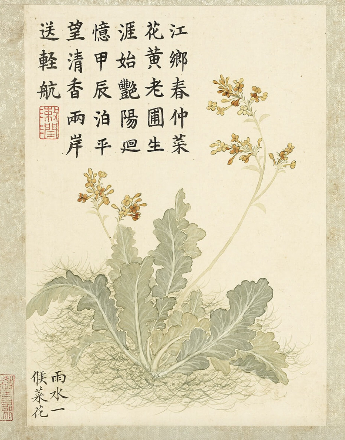 在重农思维的主导下,皇帝也为菜花“背书”,这无疑也大大提高了菜花的地位。乾隆皇帝曾六次南巡,一般在正月离开京城;一路而南,渐入油菜花的主产区。景随时改,他到达南方时往往正是油菜花季。乾隆对菜花尤其“情有独钟”,《御制诗集》中以“菜花”为意象或题材的作品超过四十首,他甚至即兴命题,《钦定南巡盛典》卷七十五:“乾隆三十年南巡,召试浙江诸生,钦命题目《菜花赋》。”以菜花为赋题绝对是乾隆的“创举”,之前牡丹、菊花、荷花等名花赋作甚多,而以寻常菜花作赋却是首次。