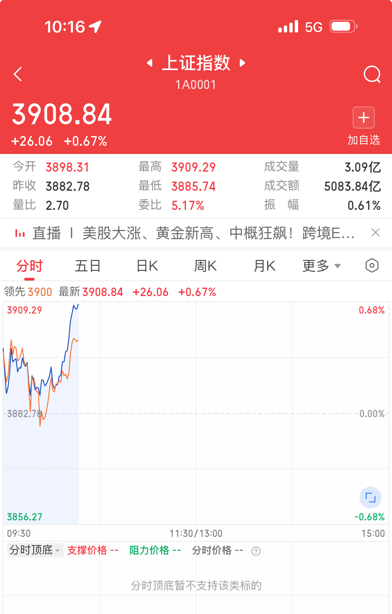 扬子晚报网10月9日讯(记者 范晓林)上证指数盘中突破3900点,续创10年新高,自4月7日低点已涨超28%,年内累计涨幅达16%。据WIND资讯,这是2015年8月以来首次。