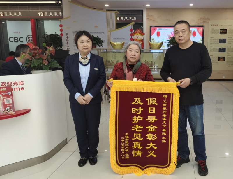 “假日寻金彰大义,及时护老见真情”,这面锦旗不仅是对工行服务质量的充分认可,更是工行积极履行社会责任、践行服务宗旨的生动写照。