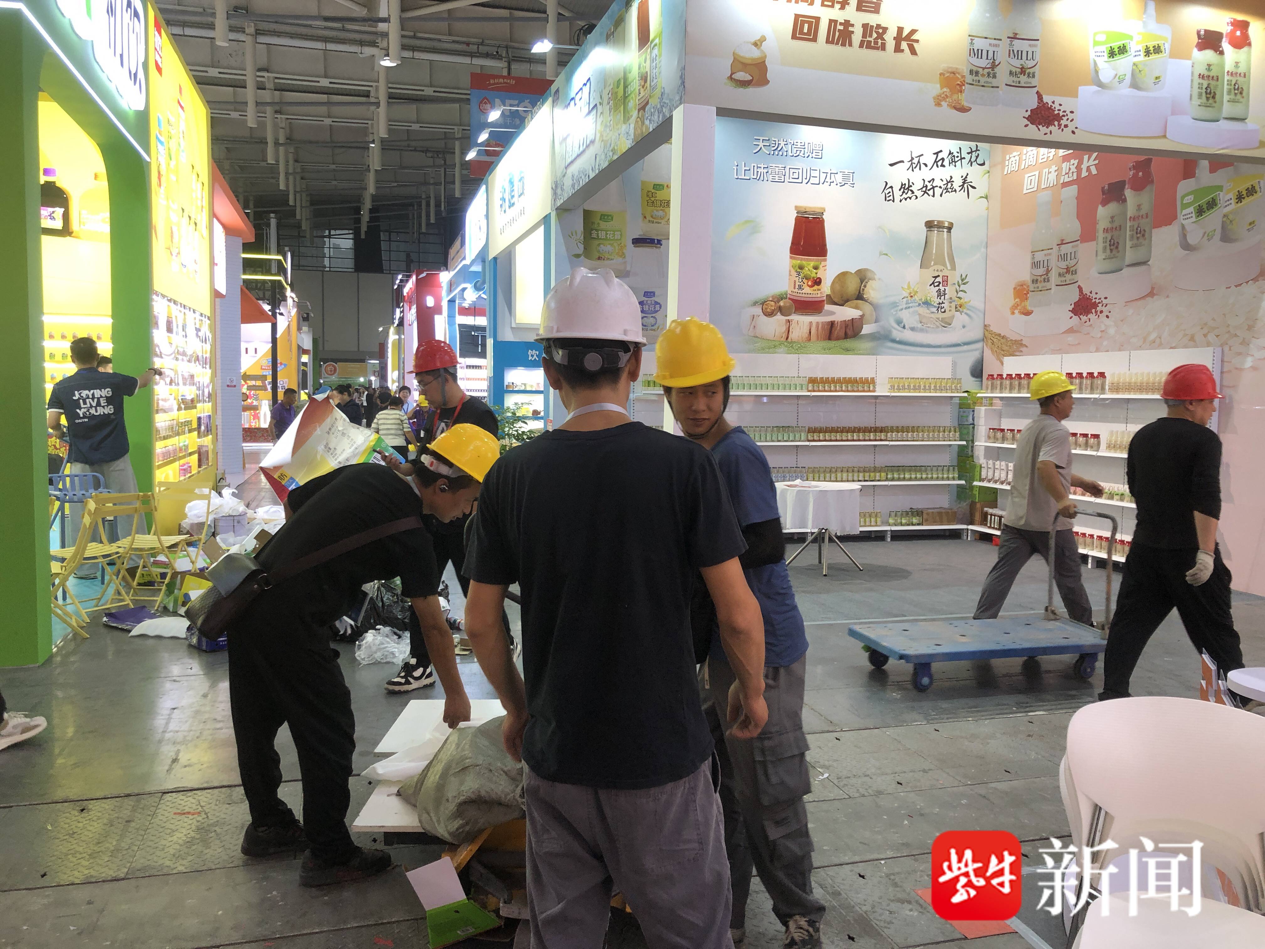 扬子晚报/紫牛新闻记者15日在南京国际博览中心现场探馆时看到,各展区目前已进入最后的搭建、装扮阶段,静待市民与客商前来品鉴这场“舌尖之旅”。