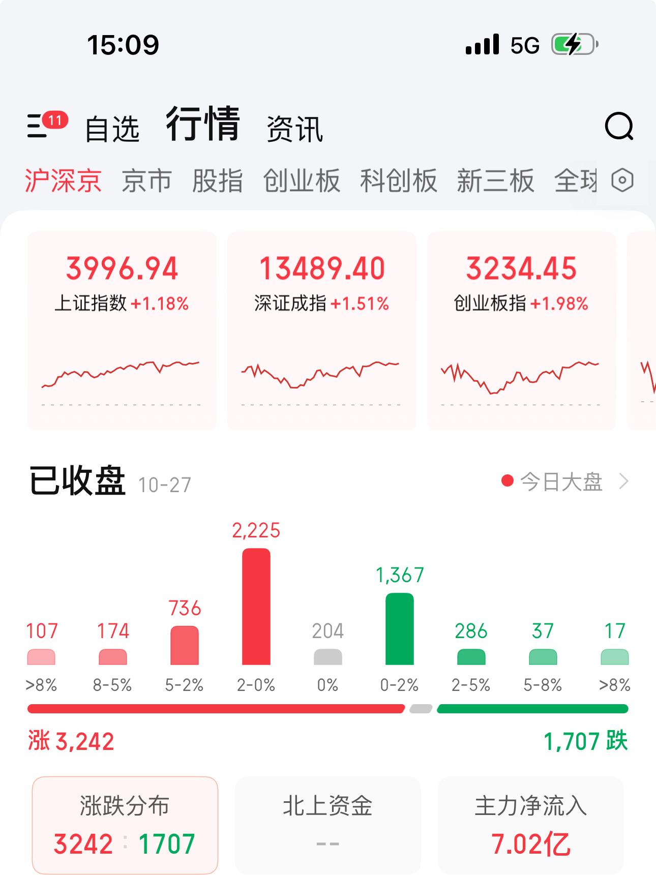 扬子晚报网10月27日讯(记者 范晓林 实习生潘伊笑)沪指高开高走涨超1%,再创十年新高,盘中最高3999.07点,只差一点逼近4000点。沪深两市成交额2.34万亿,较上一个交易日放量3659亿。
