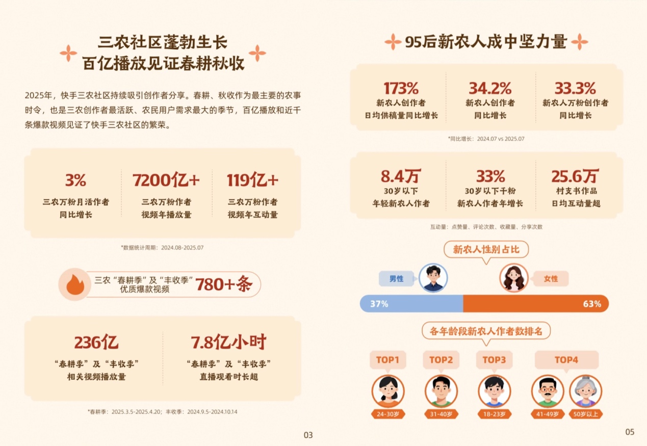 近日,快手发布了《2025快手三农生态数据报告》(以下简称报告),报告显示,平台三农深度兴趣用户规模已达1.4亿,甘肃、西藏、新疆、青海、四川成为用户增长最快的五大省份,50岁以上及30岁以下用户群体增速显著。