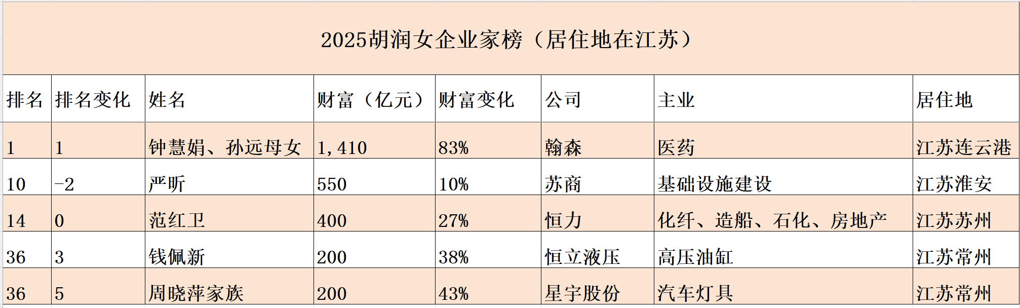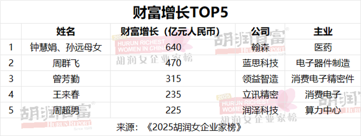 《2025胡润女企业家榜》发布,江苏钟慧娟母女成中国女首富