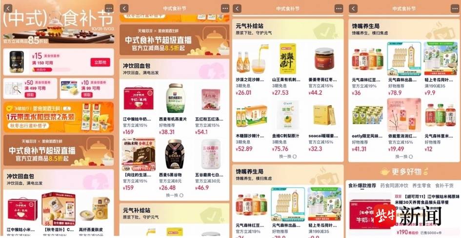天猫双11最新数据显示,“新中式养生”食品销售依旧火爆。10月15日,天猫双11正式启动后,苹果黄芪、山药、葛根、姜黄、沙棘汁、刺梨汁等带有这些成分的商品同比增长尤为显著。其中“苹果黄芪水”搜索量同比增长13倍,“山药粉”和“葛根粉”搜索量同比增长均超过6倍。