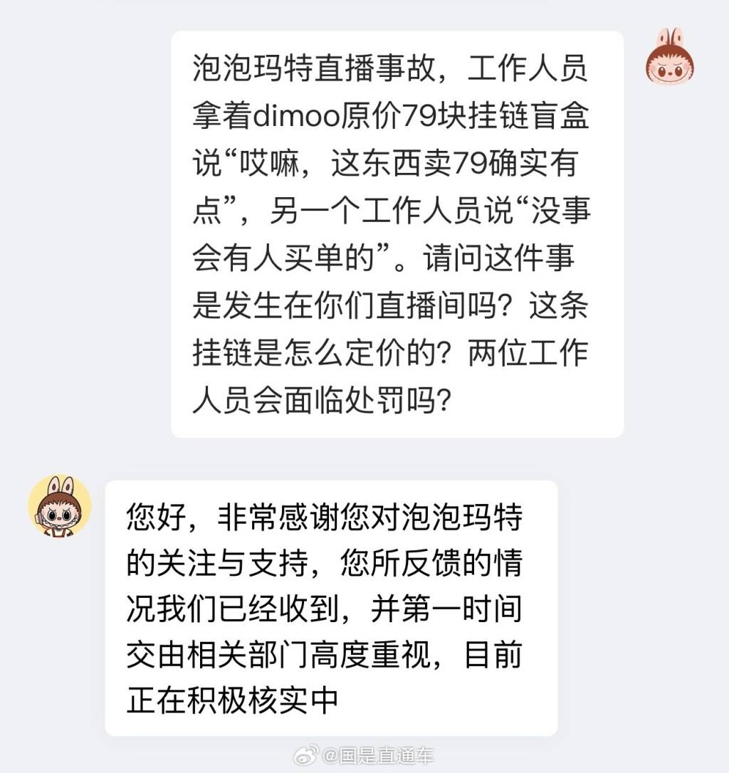 泡泡玛特客服回应直播间涉盲盒“翻车事故”:正在核实