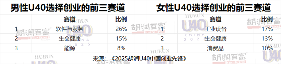 男性U40青睐的前三赛道是软件与服务、生命健康、能源。女性U40青睐的前三赛道是工业设备、生命健康、消费品。