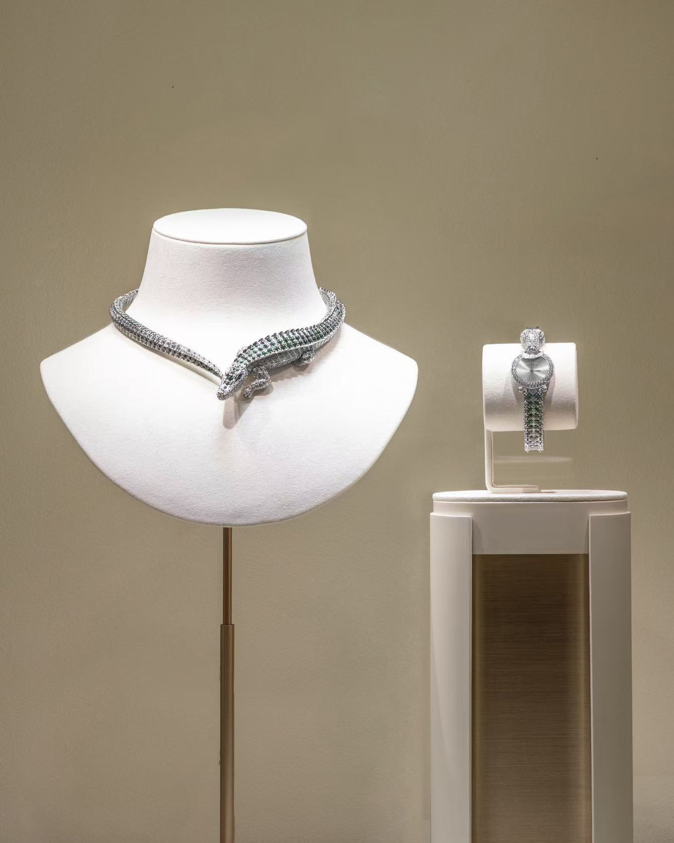 卡地亚连续六年参展,这次直接把整个“动物王国”搬来了现场。那只标志性的猎豹旁边还有悠然漫步的猛虎、静默蛰伏的鳄鱼,个个都是精工细作的珠宝艺术品。