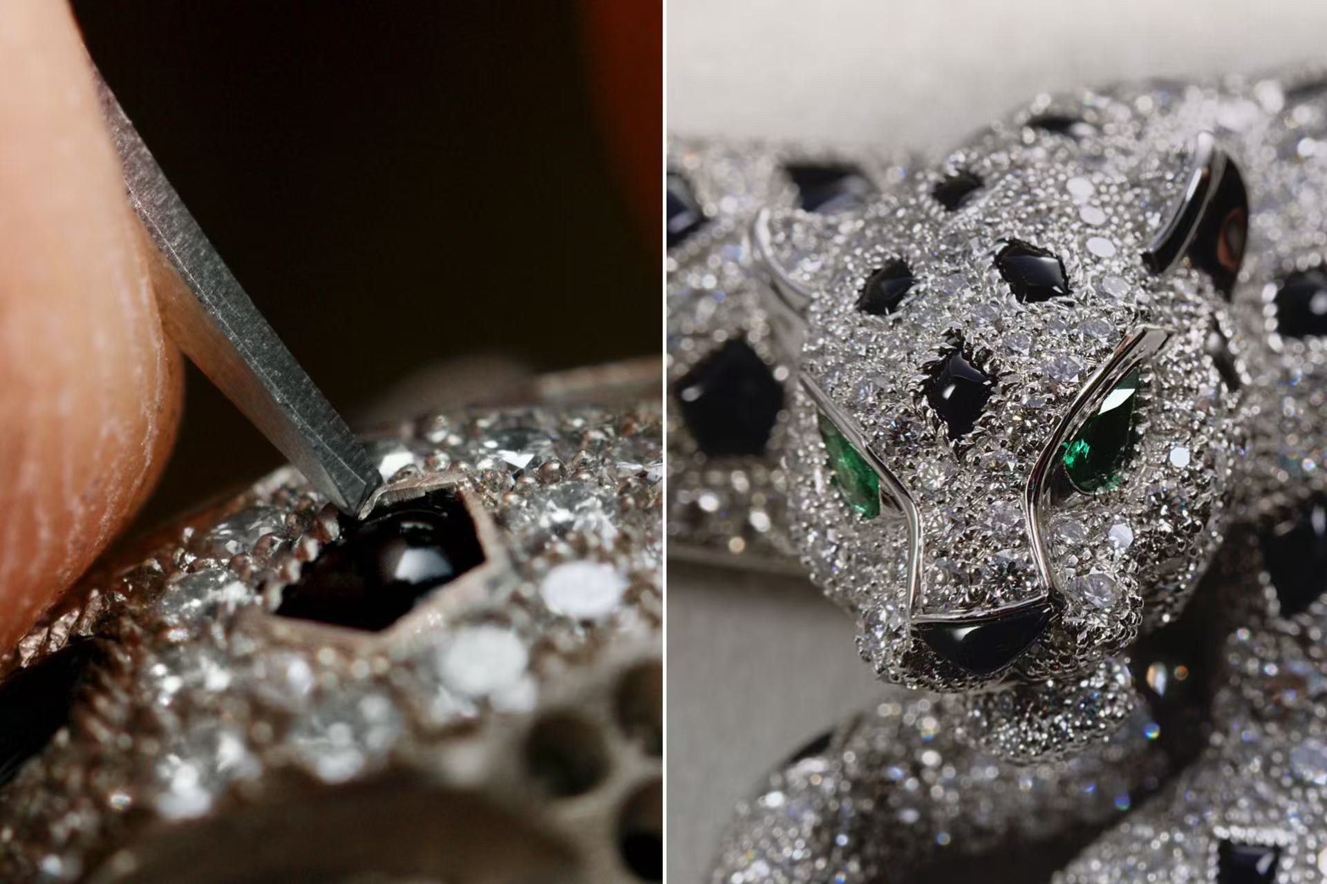 “你看这个猎豹的皮毛效果,”展台工作人员介绍,“这是我们独有的‘皮毛’镶嵌工艺,每颗宝石都要用金属丝单独缠绕,光这一件作品就得花上好几个月。”