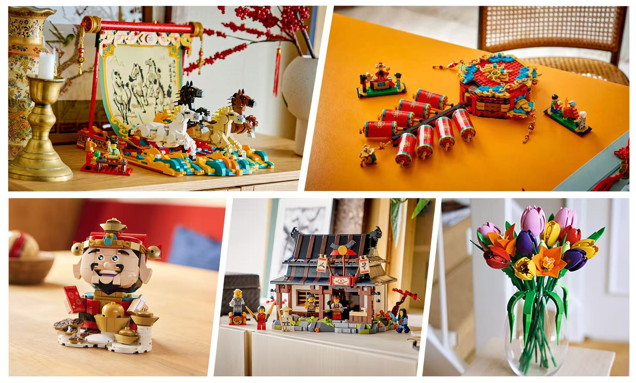 不远处的乐高展台,为迎接农历马年推出的《骏马鸿图》新品引人注目。四匹骏马能通过转动手柄从画布里“跑”出来,这个巧妙的设计让观众直呼“神奇”。