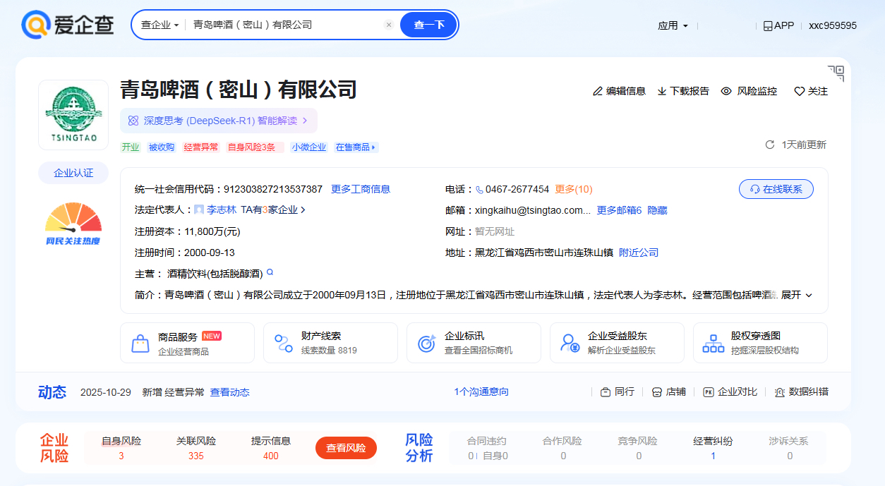 值得注意的是,这已是密山公司在短期内第二次出现相同的状况。上一次被列为经营异常发生在去年8月,尽管其后可能曾被移出名录,但问题的重复出现,表明此前暴露的联络不畅或地址不实的问题并未得到根本性解决。这种反复异常的状态,不免让外界对其内部管理的规范性、持续经营能力的稳定性,乃至母公司青岛啤酒对旗下子公司的管控效能产生疑问。