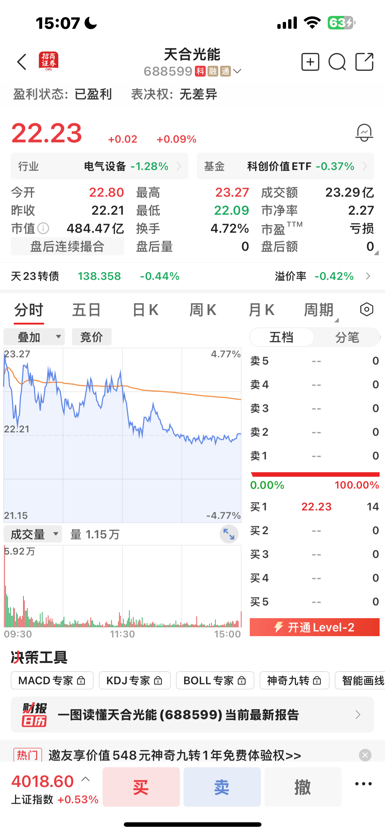 天合光能市值484.47亿元。