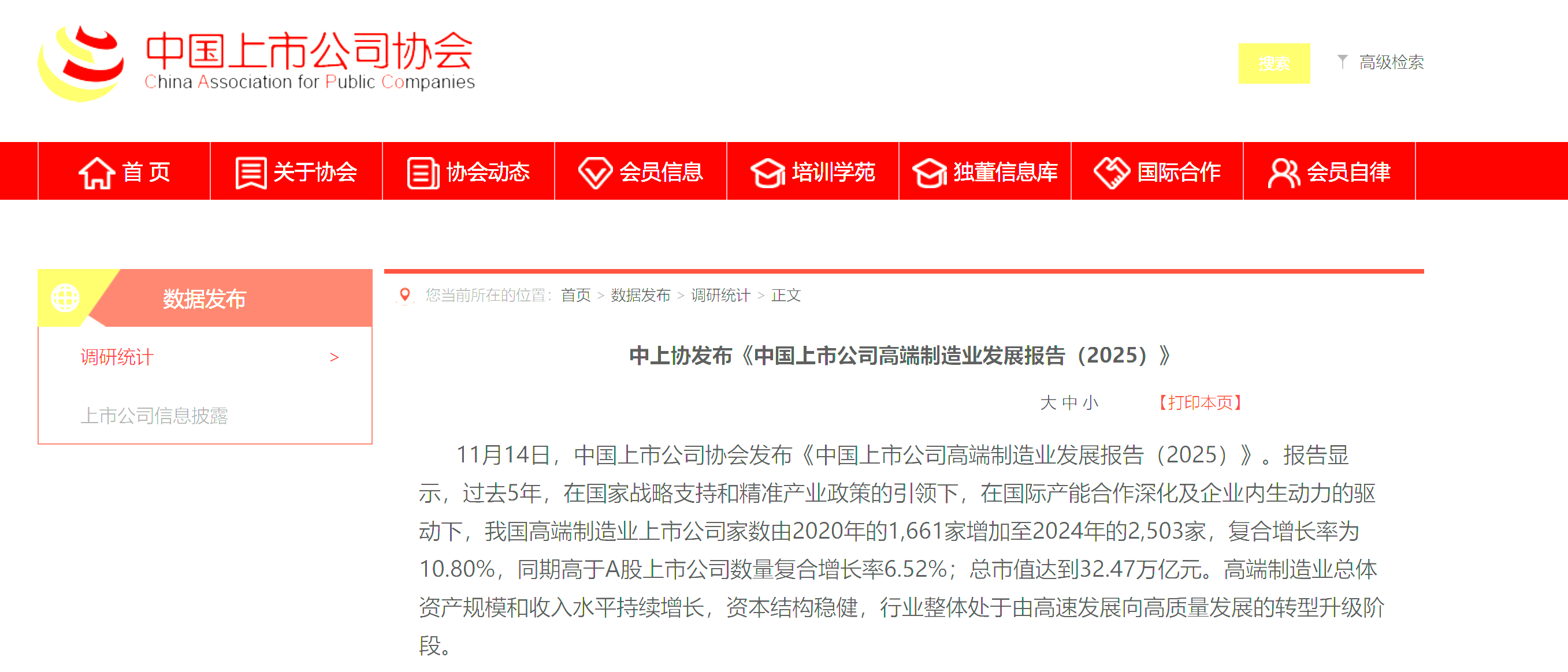 11月14日,中国上市公司协会发布《中国上市公司高端制造业发展报告(2025)》。
