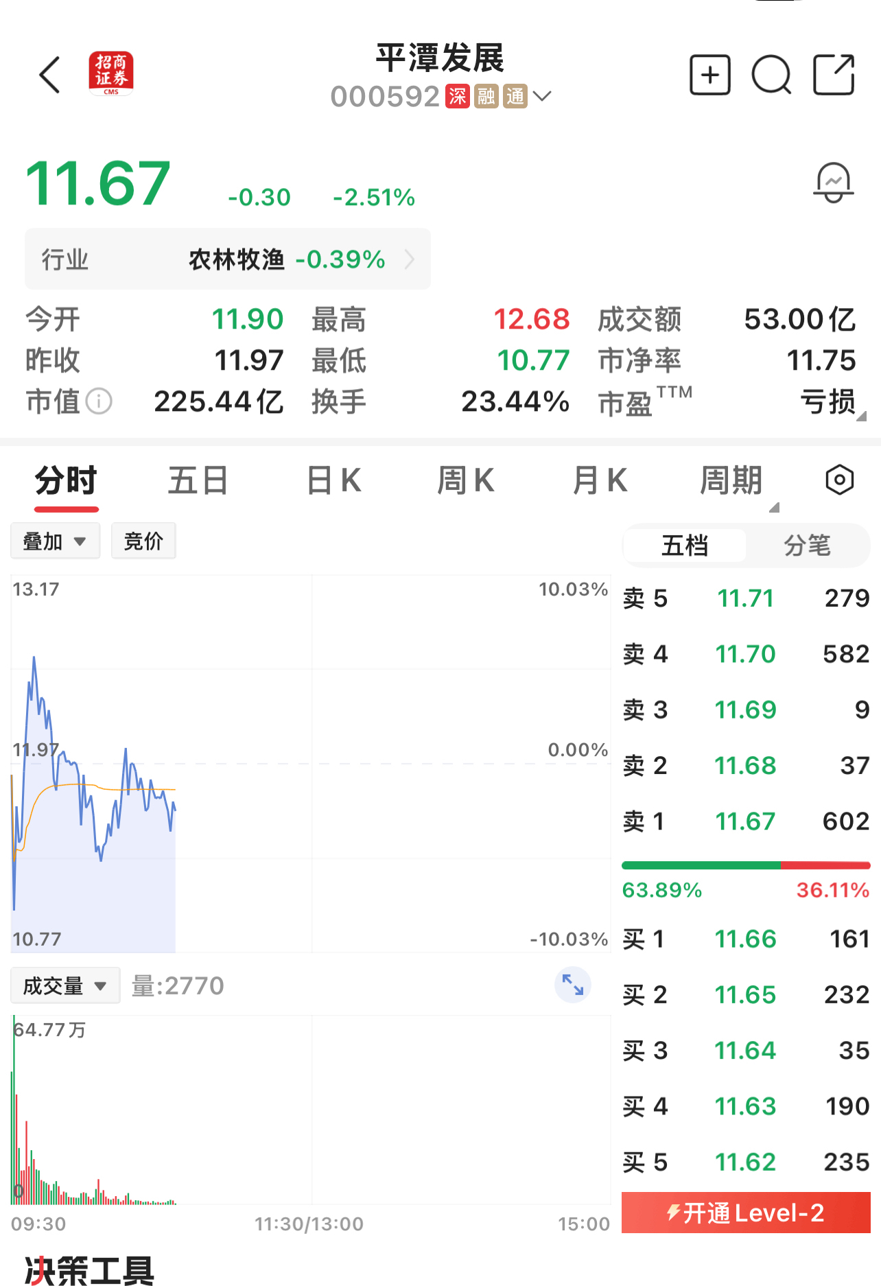 11月17日,平潭发展再度一字涨停,报11.97元/股。自10月17日上涨启动,该股走出“21天13板”行情,股价累计涨幅255.19%,总市值从65亿飙升至231亿。