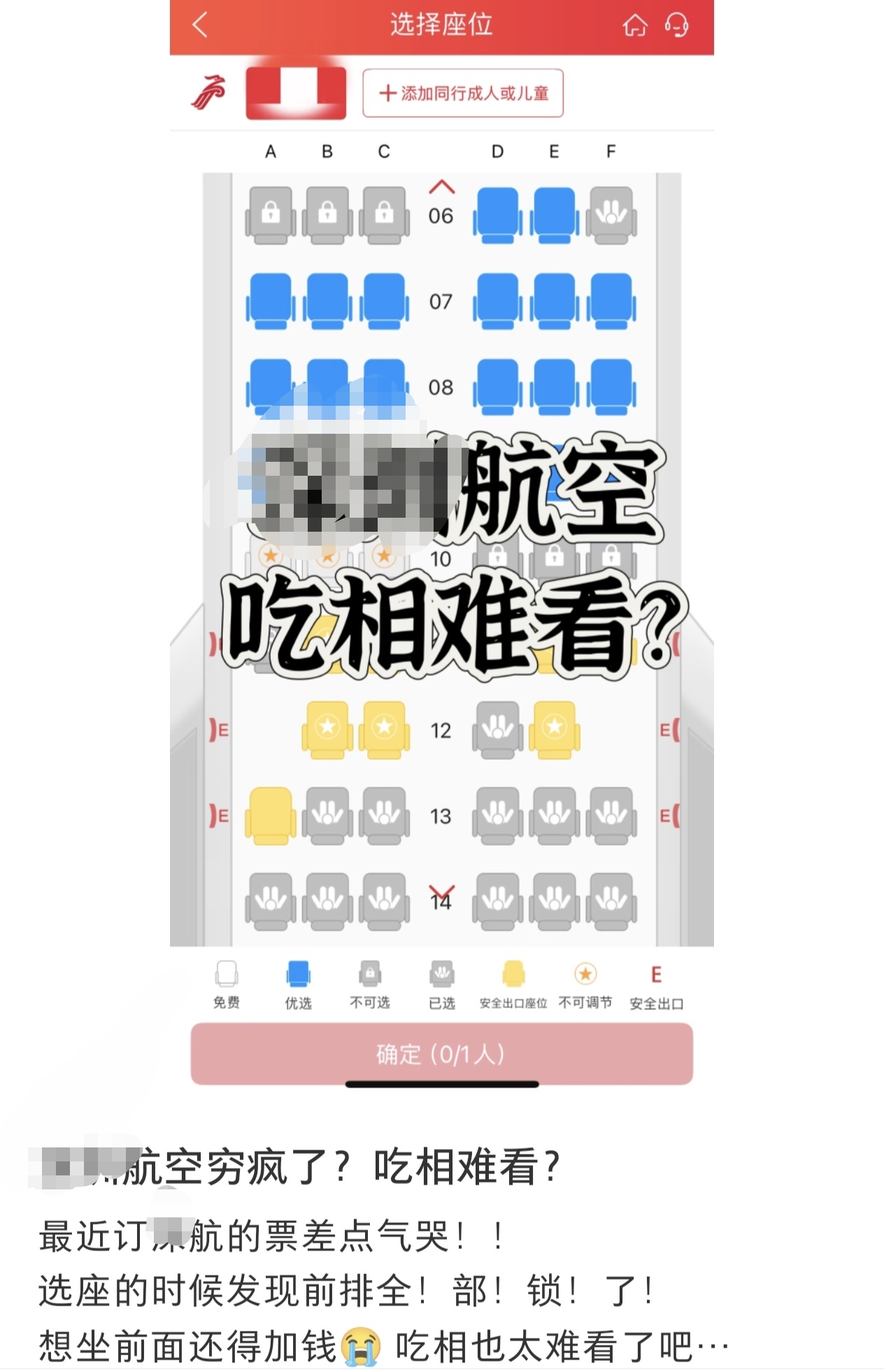 第二个问题,是解锁机制变相付费,挤压普通消费者权益。锁定的优选座位主要依赖会员积分/里程兑换,但非会员或偶尔出行的消费者缺乏积分累积渠道,只能被动接受普通座位;部分航司进一步增设付费路径,开放积分/里程付费购买座位,实质将“基本座位选择权”拆分为付费服务,变相提高出行成本。