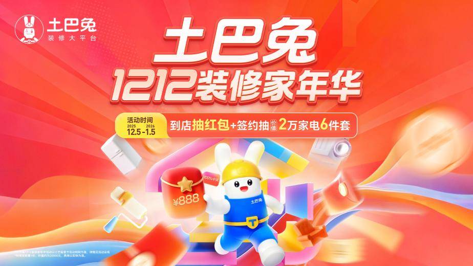 年终家装热潮来袭,不少消费者开始琢磨年终装修如何“避坑”又“省钱”。土巴兔近日官宣称,2025年12.12装修家年华将于12月5日启动,持续至 2026年1月5日,以“全链条优惠+创新服务+坚实保障”为核心,推出四大板块玩法。