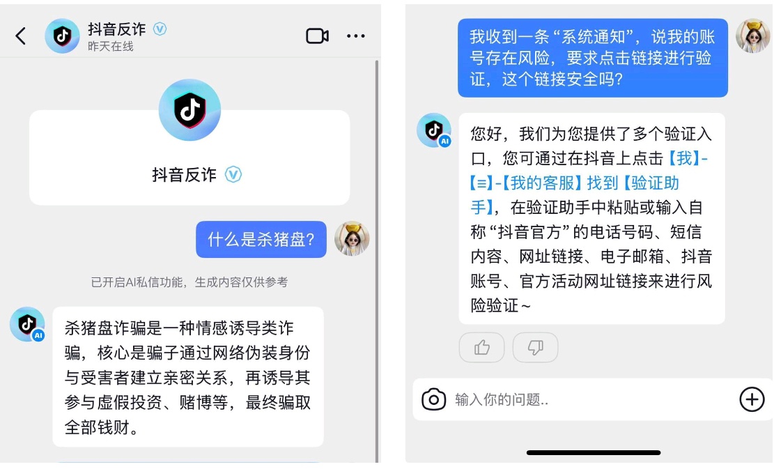 “抖音反诈”智能答疑上线:私信即可识别风险,全天自动响应