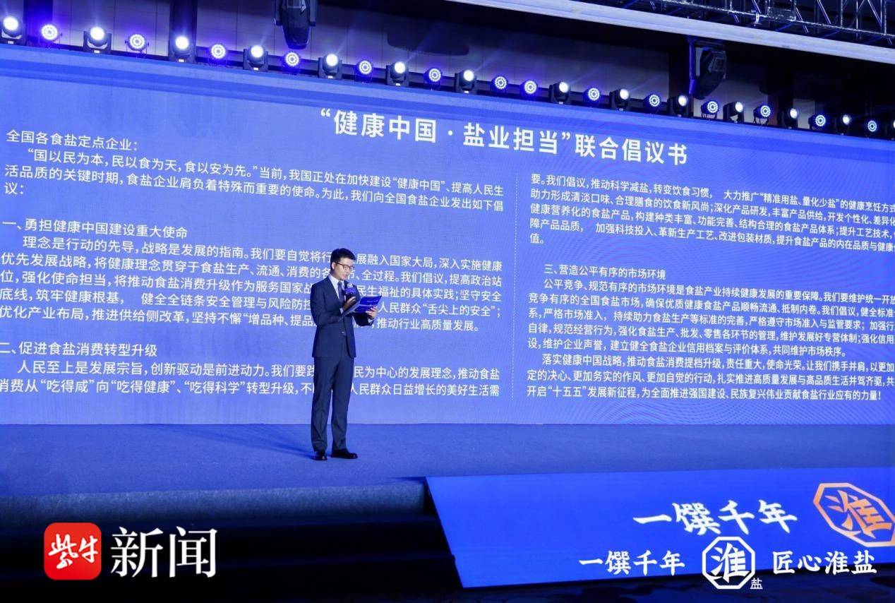 随着健康中国战略深入推进,科学用盐、健康用盐已成为全民关注的热点话题。发布会上,人民日报《健康中国·科学用盐——我为人民代“盐”》专访环节邀请了中国疾控中心营养与健康研究所博士生导师、研究员霍军生,江南大学食品学院教授张文斌,广东天企生物科技公司总经理黄烽,苏盐集团党委副书记、总经理郭玉臣等业内专家,与行业代表共话盐业创新与健康新态势。会上,苏盐集团联合同行发起“健康中国·盐业担当”的倡议,号召全国盐业同行强化使命担当,深入推进“增品种、提品质、创品牌”,保障食盐安全稳定供应,守护老百姓“舌尖上的安全”。