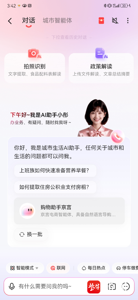 为进一步提升用户体验,京东App上线的市民服务创新引入AI智能助手“AI助手小彤”,通过AI驱动服务升级,显著提升办事效率、降低操作门槛。该AI智能助手基于京东全自研的JoyAI大模型,具备强大的自然语言理解与生成能力,能够以拟人化、场景化的方式精准解答用户各类疑问,并根据用户需求智能推荐匹配的服务路径。