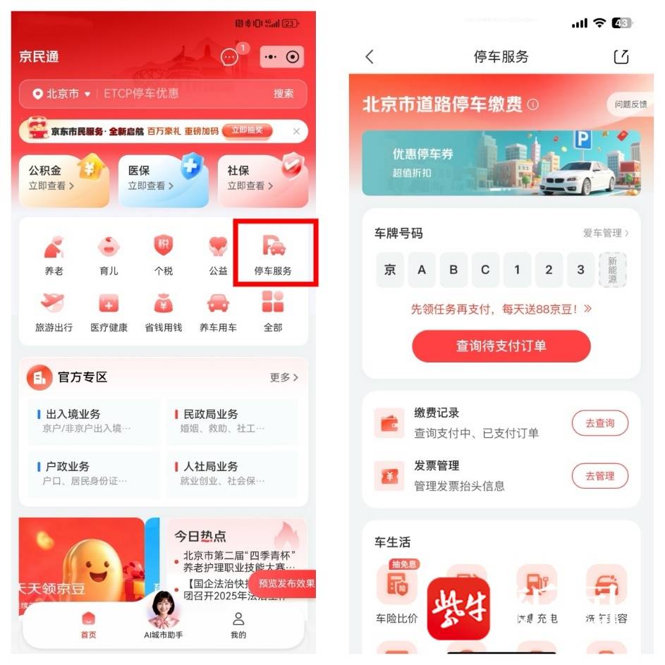 值得一提的是,部分城市还推出了极具本地特色的便民功能。在北京,市民可通过京东App市民服务直接使用“北京市道路停车缴费”功能——登录京东App,搜索“京民通”,进入小程序后点击“停车服务”,即可完成路边停车费用的在线缴纳,进一步拓展城市智慧出行场景。