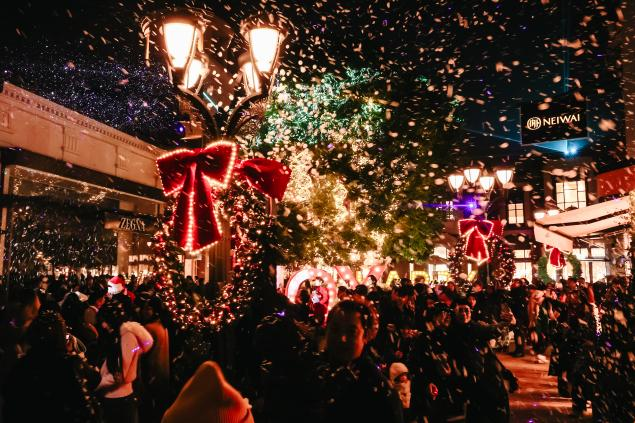 恰逢这里的湖畔暖冬市集正在进行,每逢周五、周末及节假日,星空树倒计时光影秀、浪漫雪花秀与RITUALS香氛气雾泡泡秀轮番上演,把整个购物村变成了冬日童话场。市集里,RITUALS的香氛、LAN Café的热饮、Wava Pizza的现烤披萨香气袅袅,逛累了便能寻一处角落,捧一杯热奶茶感受冬日暖意。值得一提的是,这里超200家品牌如ARMANI、VALENTINO都备好了年末礼遇,12月20日迪桑特儿童全国奥莱首店还将开业,带娃家庭能收获更多惊喜。