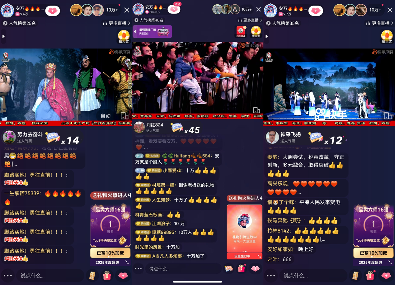 《2025快手泛知识数据报告》显示,快手泛知识领域30岁以下万粉作者视频发布量同比增长83%,50岁以上创作者数达35.5万,年轻用户与银发用户共同成为传统文化传播的核心力量。安万的上海巡演,正是这一趋势的生动体现——现场观众中,既有跟着唱词打节拍的老人,也有全程举着手机拍摄的年轻人。