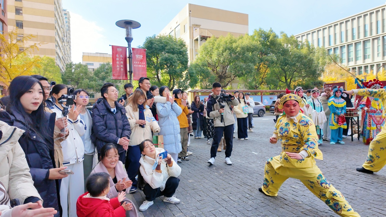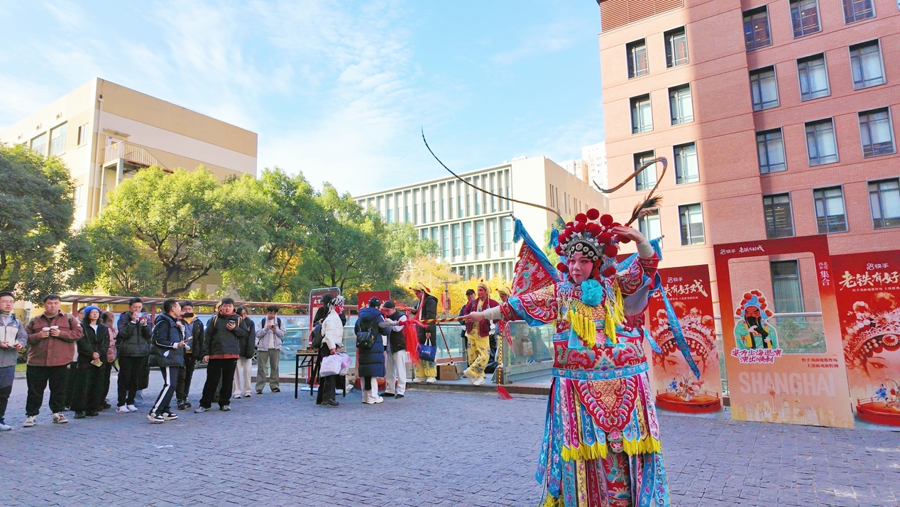 12月4日的城市快闪,剧团更是带着秦腔走进复旦大学,为传统艺术注入青春活力。剧团演员现场展示水袖功,甩袖、收袖间行云流水;武生演员的把子功表演更令人叫绝,花枪在手中旋转如飞,尽显秦腔武戏的刚劲力量。剧团的乐师还用唢呐、二胡演绎《天宫迅音》及多首现代歌曲,熟悉的旋律经由传统民乐诠释,赢得现场掌声不断。