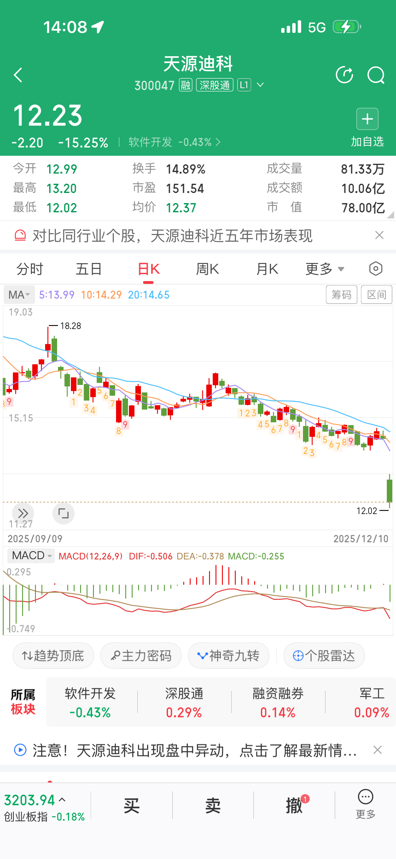 12月9日,创业板上市公司天源迪科(股票代码:300047)发布公告称,公司董事长陈友近日被江西省景德镇乐平市监察委员会实施留置措施。该消息引发市场关注,公司股价在公告日收于14.43元/股,市值约92亿元,截至记者发稿股价为12.23元美股。