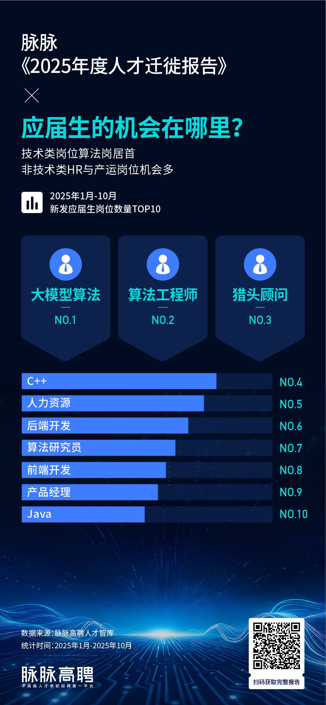 2025年1-10⽉,算法工程师、⼤模型算法位居新发岗位量最多的岗位榜第一、第⼆位。AI产品经理、⼤模型算法、机器⼈算法位列新发岗位量增幅的Top3。⾼性能计算⼯程师以⼈才供需⽐0.31成为人才最紧缺的岗位,相当于每3个岗位争夺1名求职者。SLAM算法紧随其后,供需⽐为0.38。