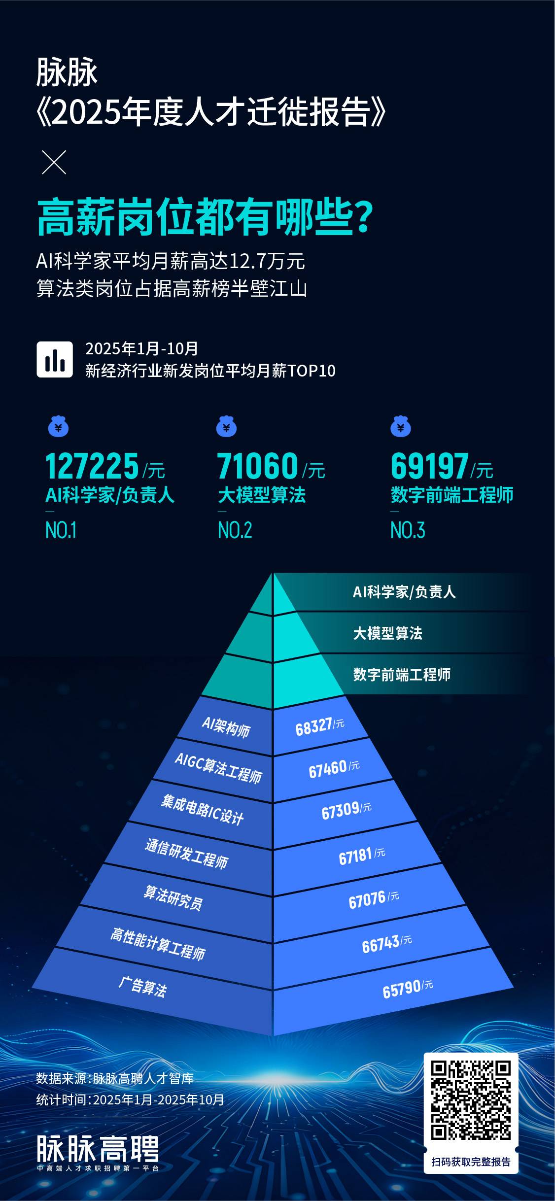 高薪岗位TOP20的平均月薪均超过6万元,AI研发岗占据大半。其中,AI科学家平均月薪突破12.7万元。同时,“AI”带来的薪资溢价十分显著:AIGC算法工程师平均薪资较普通算法工程师高出近18%,AI产品经理比普通产品经理高出20%。