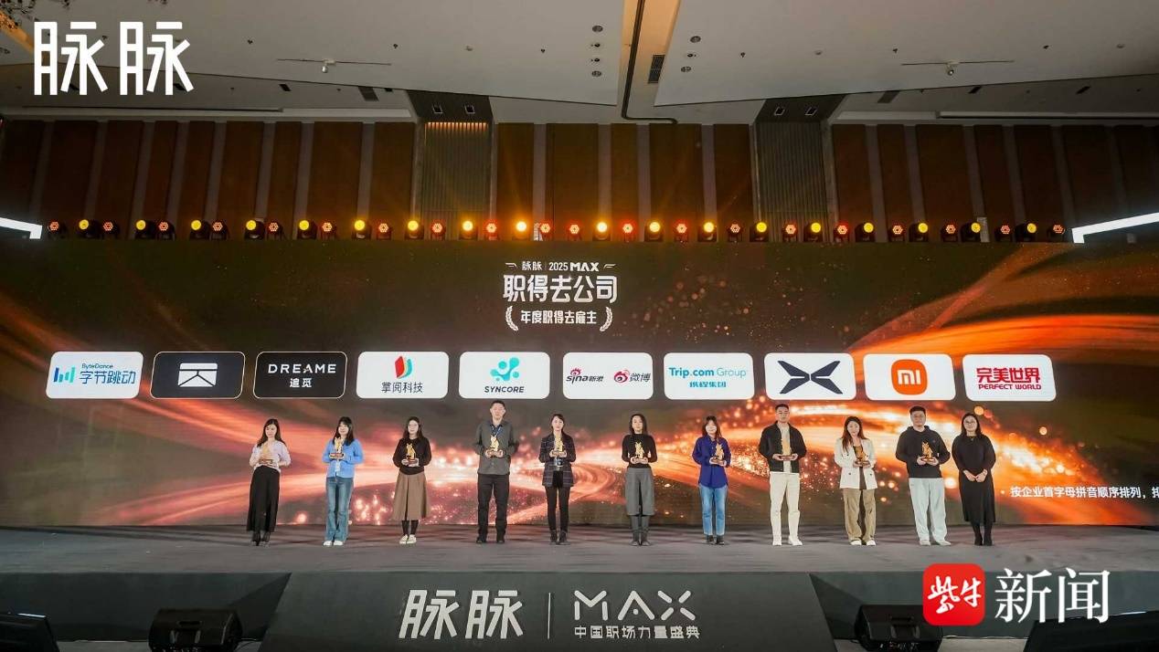 在盛典现场举行了2025MAX年度“职得去”公司颁奖仪式,共有上百家企业获奖。其中,京东集团、比亚迪、SHEIN、滴滴、腾讯、智谱华章等80多家企业入选“年度职得去雇主”;字节跳动、比亚迪、贝壳找房等企业获“应届生好评雇主”;特斯拉、博世中国等企业获“最受欢迎外企”;小米集团、趣丸科技、钛动科技等企业获得“AI招聘先锋雇主”;京东集团、美团等企业获评“AI领域卓越雇主”;SHEIN、携程集团、百度、淘天集团等企业获“技术人才焦点雇主”。同时,科锐国际、CGP集团、CGL Consulting等企业获得“最值得信赖人力资源企业”。