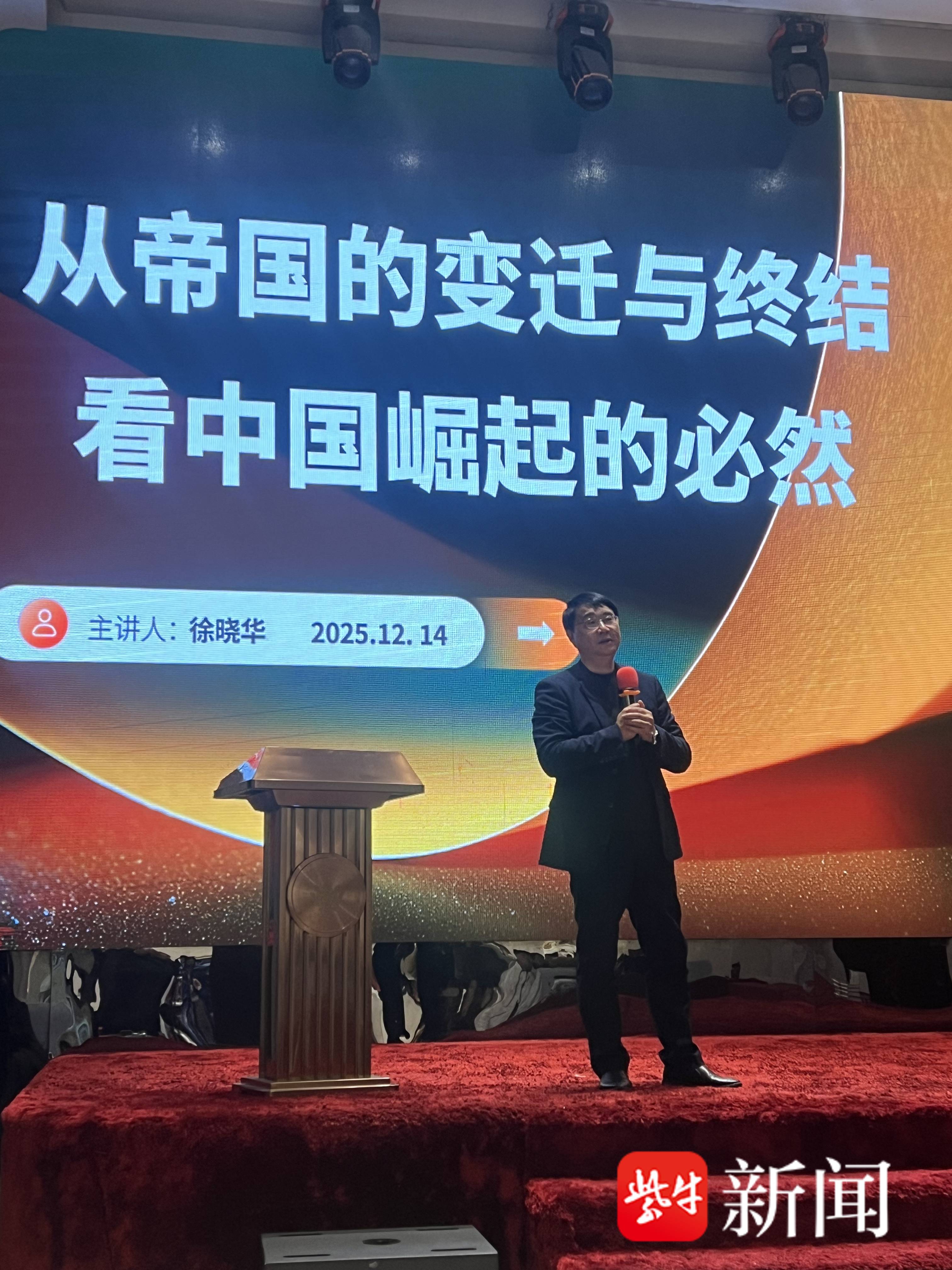 中国作家协会会员、中华孔子学会儒商文化研究专业委员会首席专家徐晓华教授做了《全球主导力量的变迁逻辑》的专题讲座。