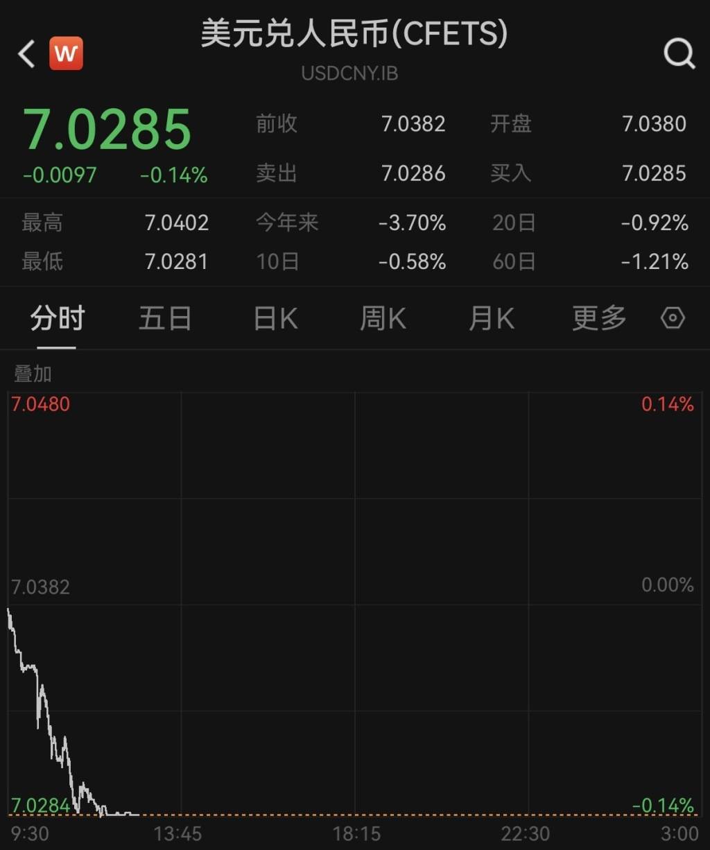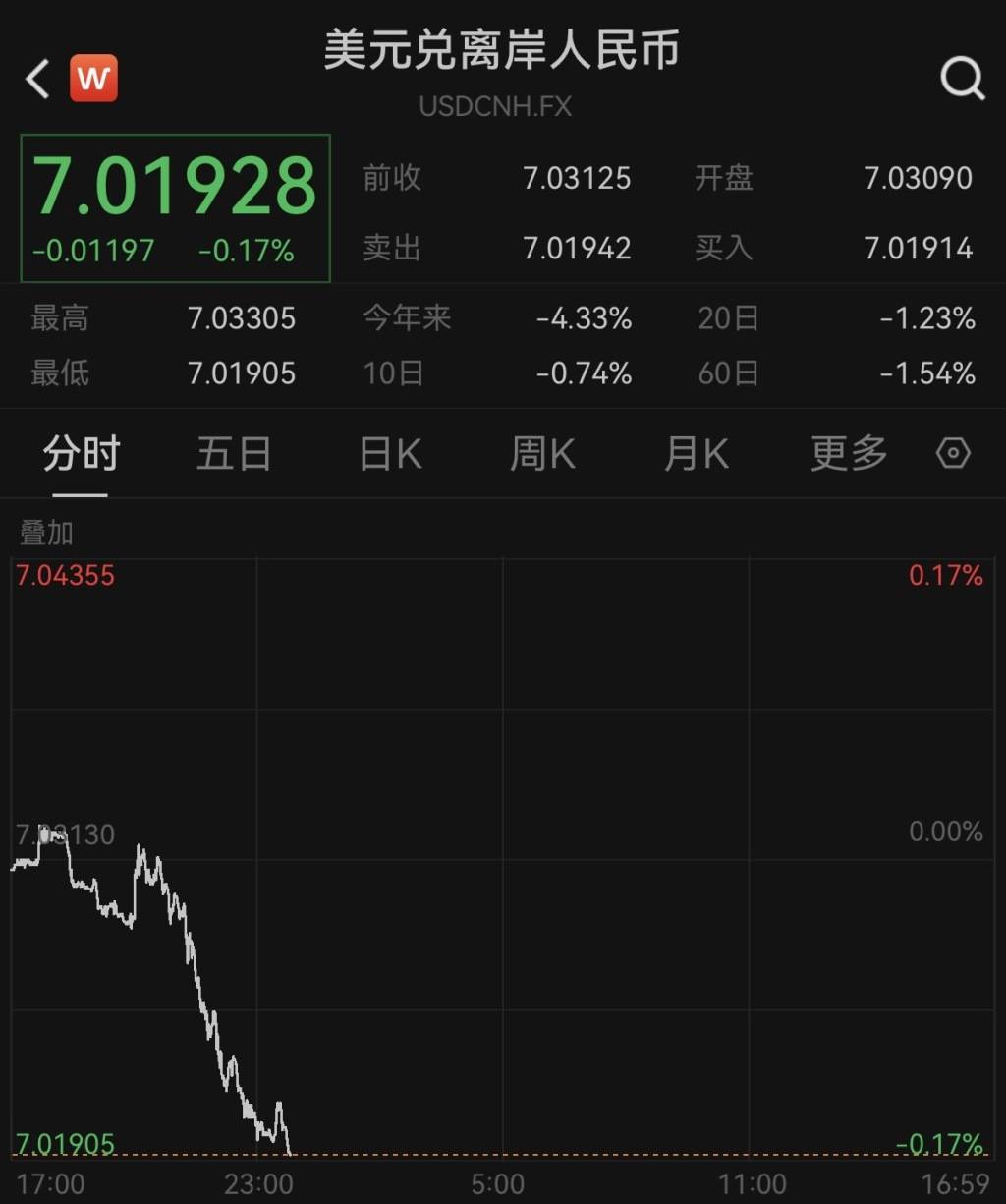 离岸、在岸人民币对美元汇率分别升破7.02、7.03