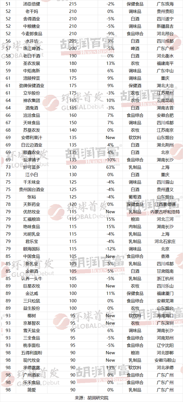 胡润食品行业百强榜发布,江苏4家企业上榜
