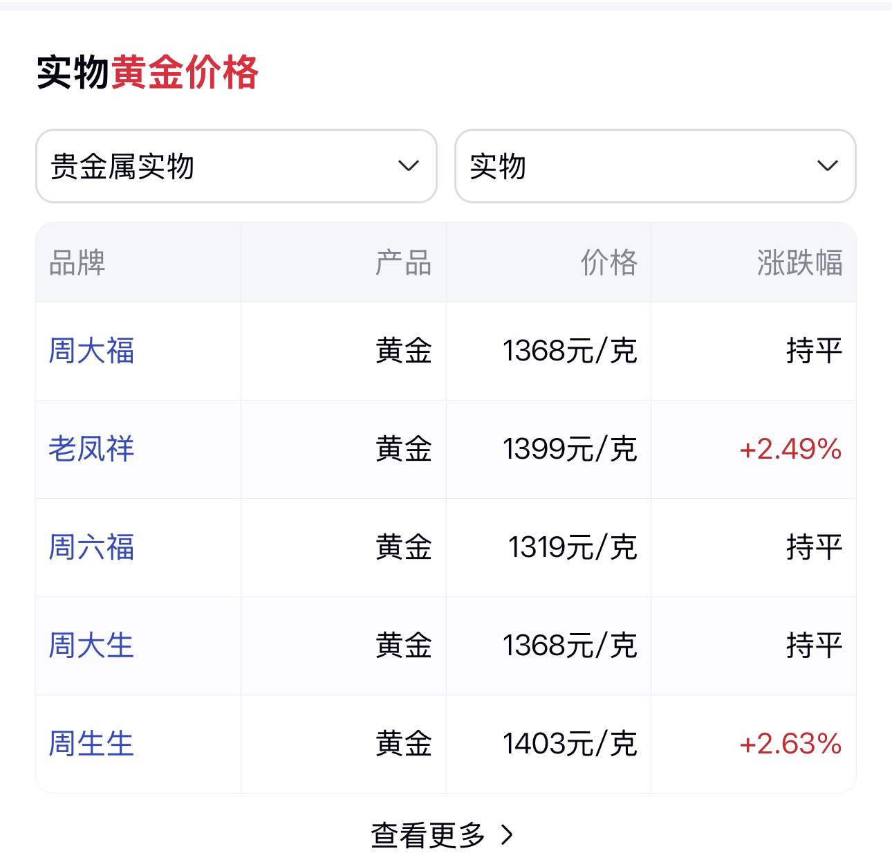 今日金价