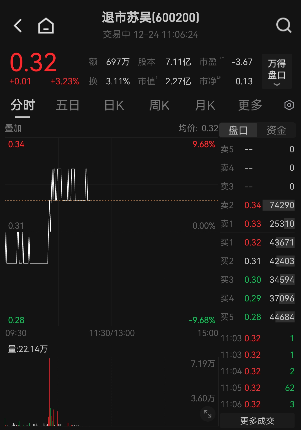 根据安排,公司股票已于2025年12月9日进入退市整理期,证券简称变更为“退市苏吴”。退市整理期届满后,其股票将被摘牌并转入全国中小企业股份转让系统(即“退市板块”)进行挂牌转让。