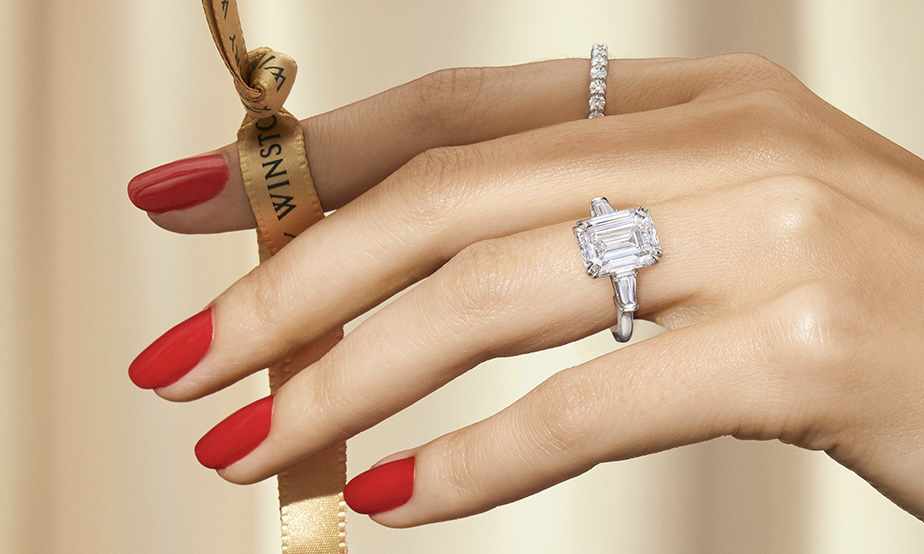 海瑞温斯顿Classic Winston祖母绿型切工订婚钻戒、爪镶圆形明亮式切工钻石戒指