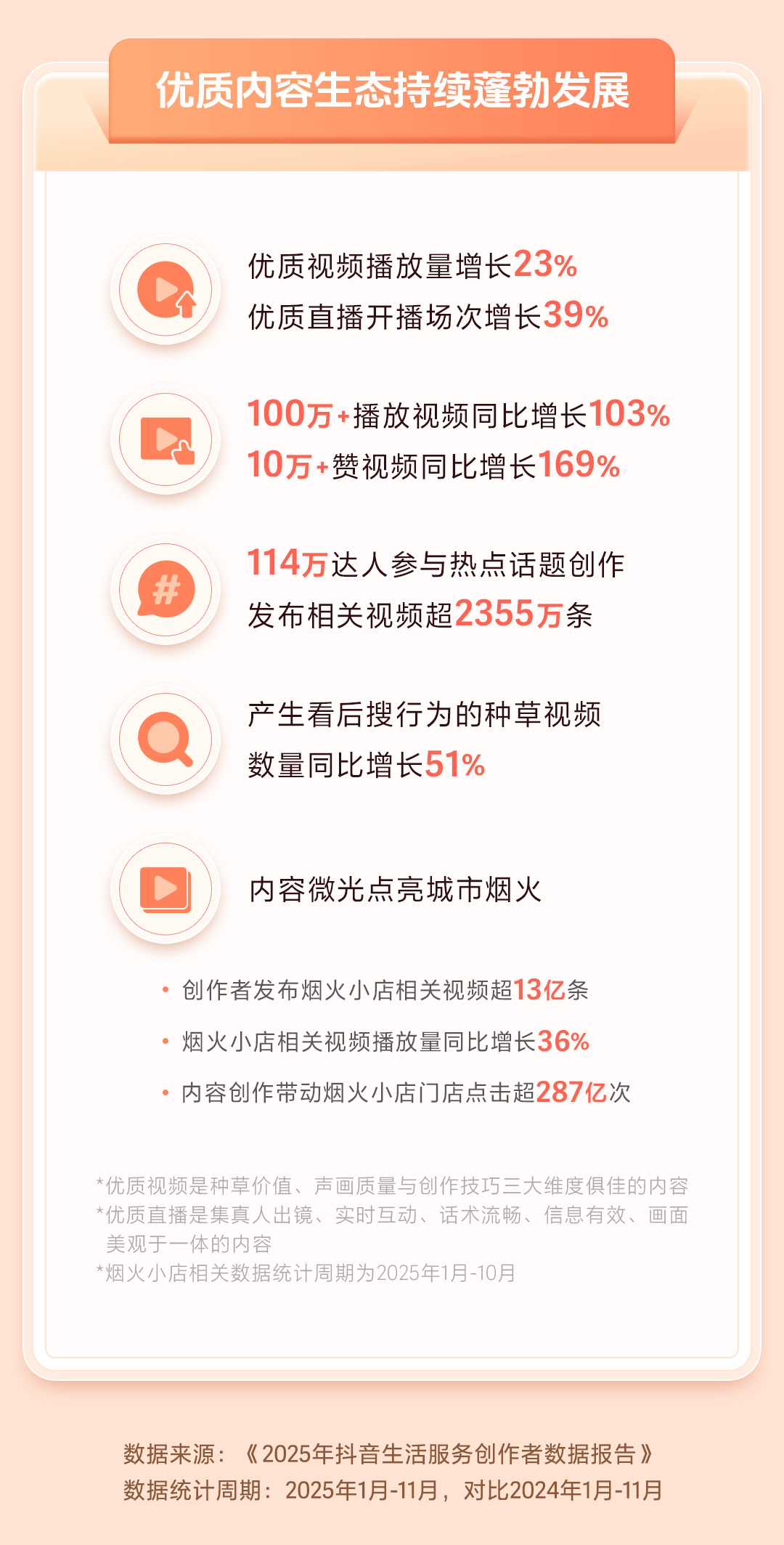 头部内容影响力加速释放,播放量超百万的视频数量同比增长103%,点赞量超十万的视频增幅达169%。同时,114万达人积极参与热点话题创作,相关视频发布量超2355万条。内容种草效果显著,直接激发用户“看后搜”行为的视频数量同比增长51%,显示出从观看到主动探索的消费链路日益顺畅。
