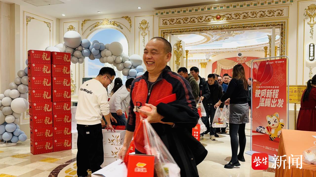 除了安全赋能,活动现场的烟火气,更让师傅们感受到了家的温暖。一场场活动下来,最实在的莫过于手里拎着的沉甸甸的礼包——有机蔬菜、新鲜鸡蛋、当季水果、牛奶米面、食用油等等,让师傅们把“新年味”直接装上车、带回家。