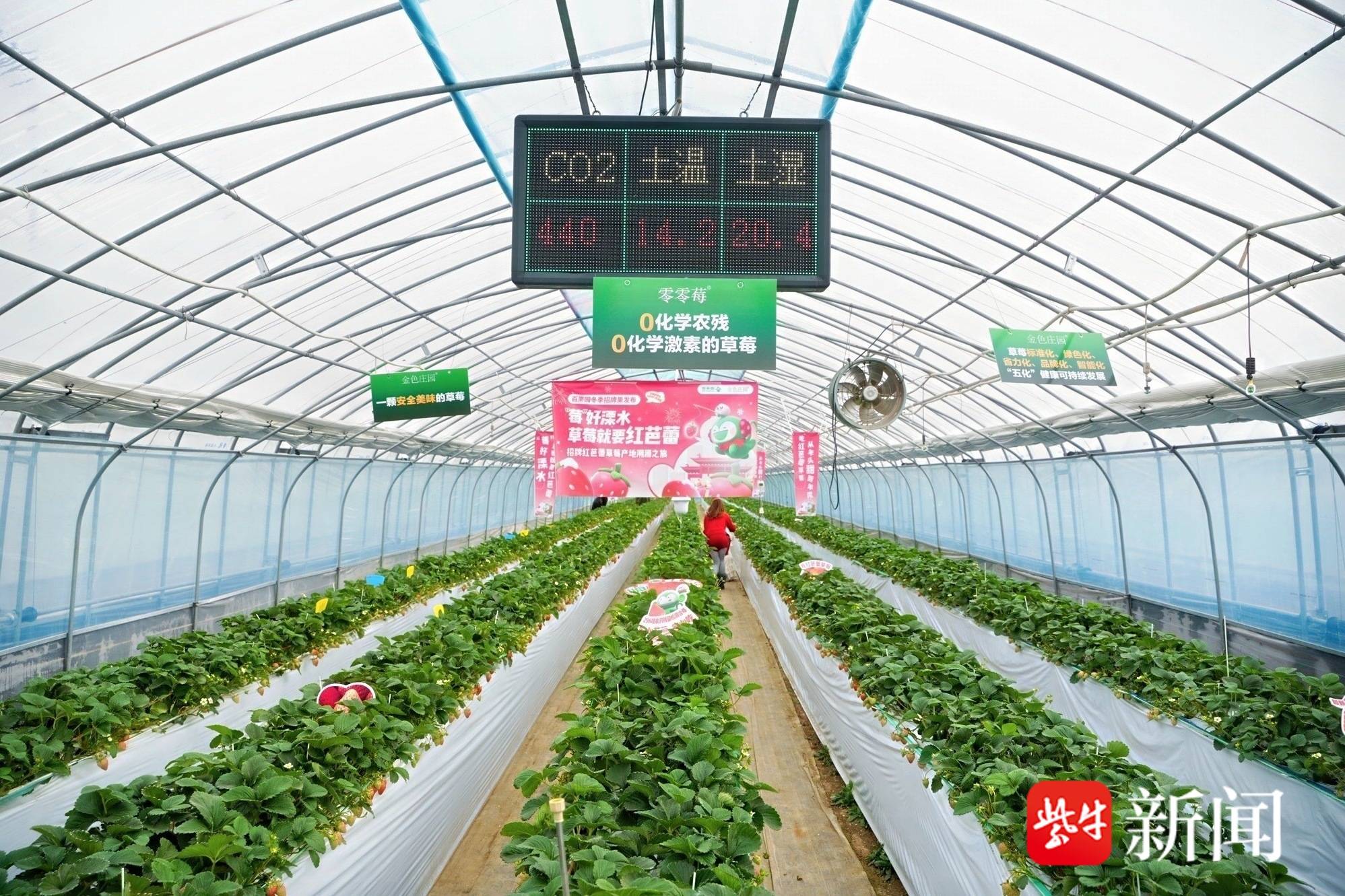 南京溧水草莓产业年产值近10亿元,被誉为“中国草莓之乡”,溧水草莓也已入选国家地理标志产品。“溧水适宜的弱酸性土壤、富含有机质的土质以及冬季显著的昼夜温差,为草莓养分的转化与风味的凝聚提供了理想的自然条件。” 江苏省草莓协会副会长、南京金色庄园研发中心主任吉沐祥说。