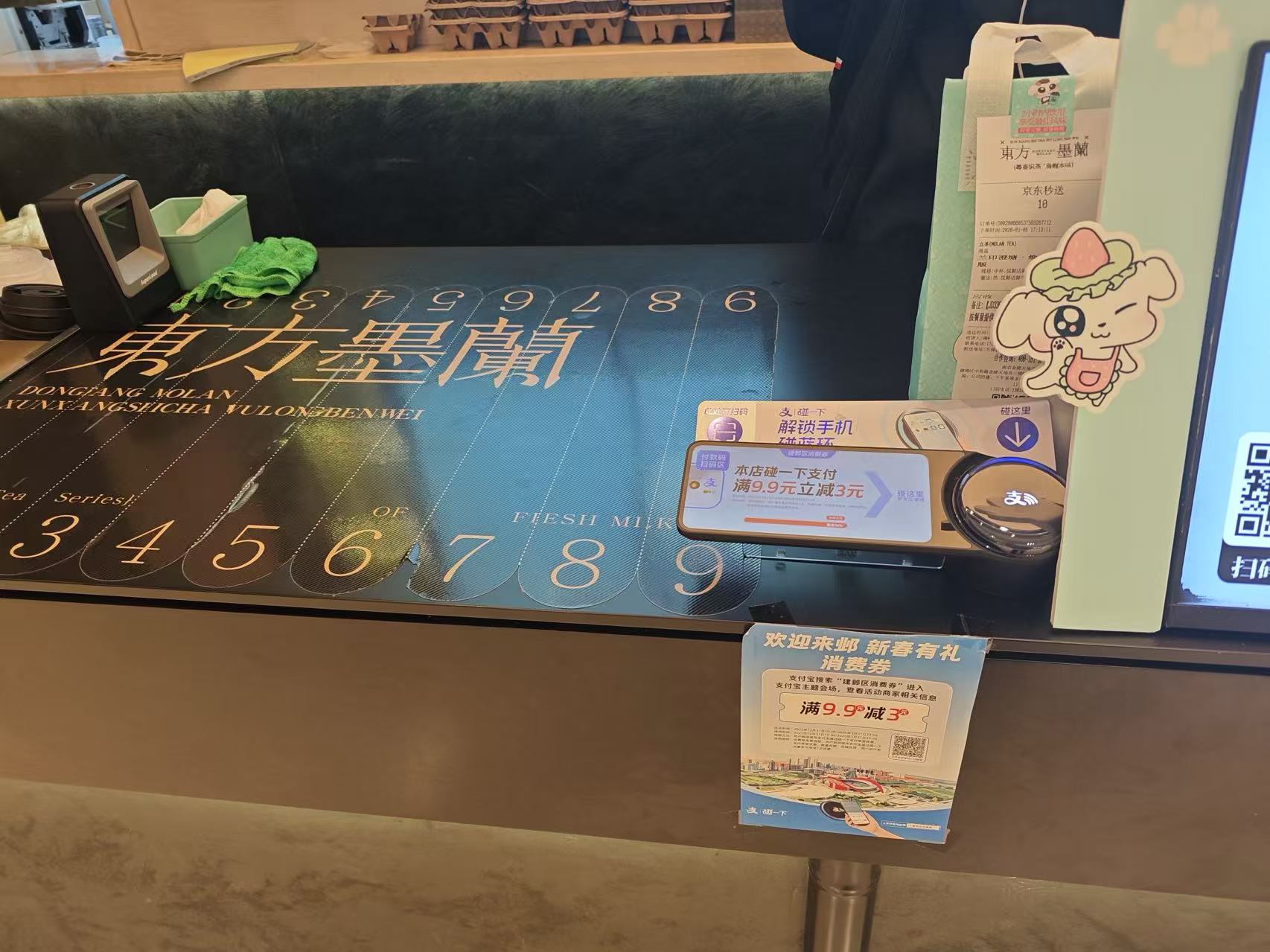 结账时,使用手机支付宝“碰一下”支付;