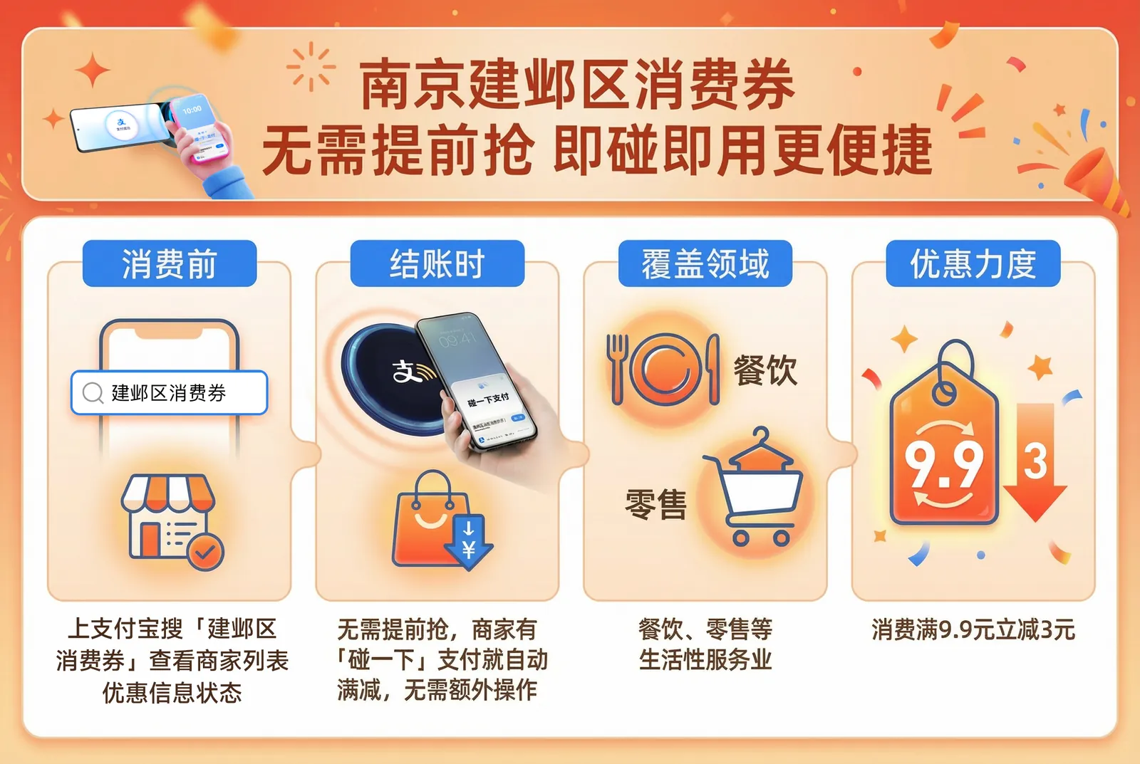 南京建邺首次推出“即碰即用”消费券:碰一下支付自动满减